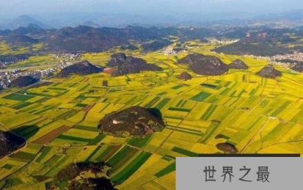 每年春天,罗平成了花的海洋、金色的世界:金色的油菜花、金色的山冈、金色的沟壑、金色的原野、金色的河堤、金色的花坛、金色的盆景。站在金鸡山上,但见漫山遍野的油菜花铺天卷地,奔来眼底。秀峰、村舍、道路、溪流……世间一切尽数融入花之海洋,甚为壮观。