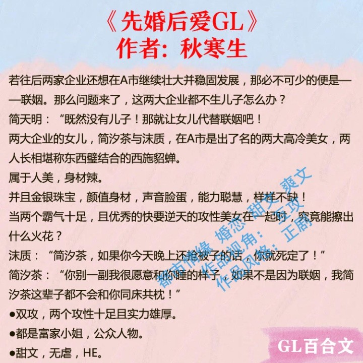 《先婚后爱GL》秋寒生 双攻甜 HE 婚恋 百合小说TXT电