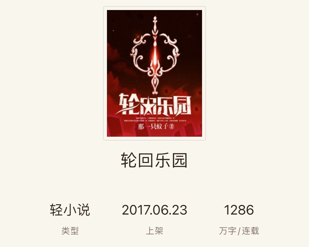 第三本《轮回乐园》作者那一只蚊子