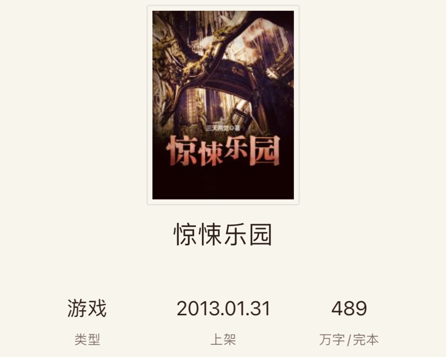 第八本《惊悚乐园》作者三天两觉
