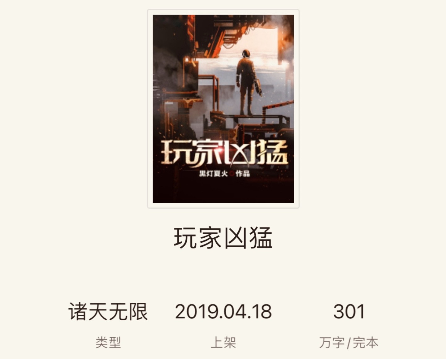 第五本《玩家凶猛》作者黑灯夏火