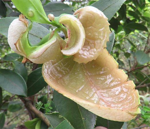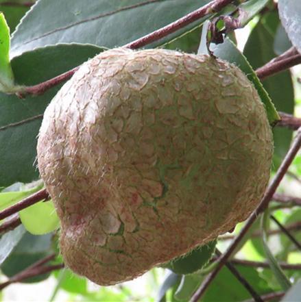 茶泡的外形很桃子一样,但是呢跟桃子又有区别,茶泡它是通体的白色或者微红,近看的话很有肉嘟嘟的感觉,有点像我们常见的菌类,不同的是茶泡是挂在树上的。