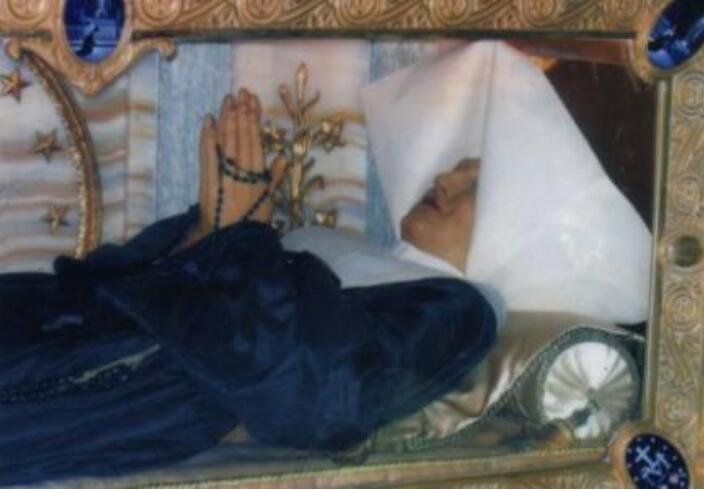 圣女贝尔纳黛特是一位非常美丽的女子,她在十四岁的时候就去了修道院,被人们称为圣女,在1909年的时候人们曾经将她的尸身挖了出来,那个时候已经是她死后135今年,当人们挖掘出她遗体的时候,惊奇的发现她的尸身竟然完好无损,容貌也是没有任何改变,就像是睡着了一般。
