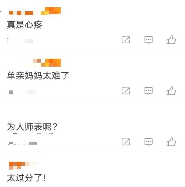 不少网友看到后纷纷表示单亲妈妈一个人带孩子真是太难了,着实令人心疼。也有网友非常义愤填膺直呼“太过分了!”可见大家对孩子的成长问题十分敏感,很是关注。
