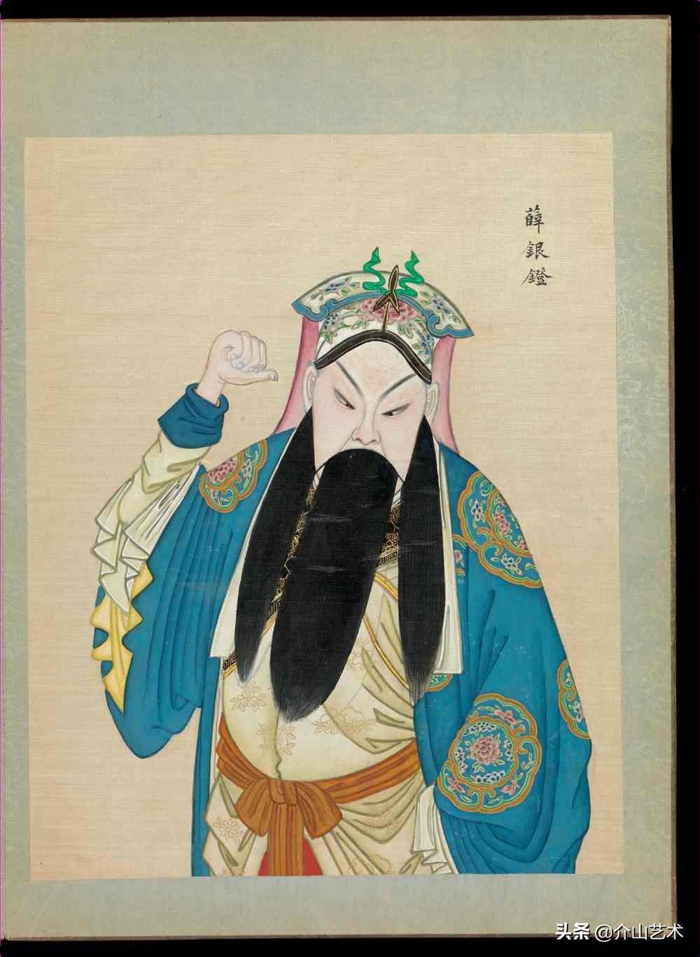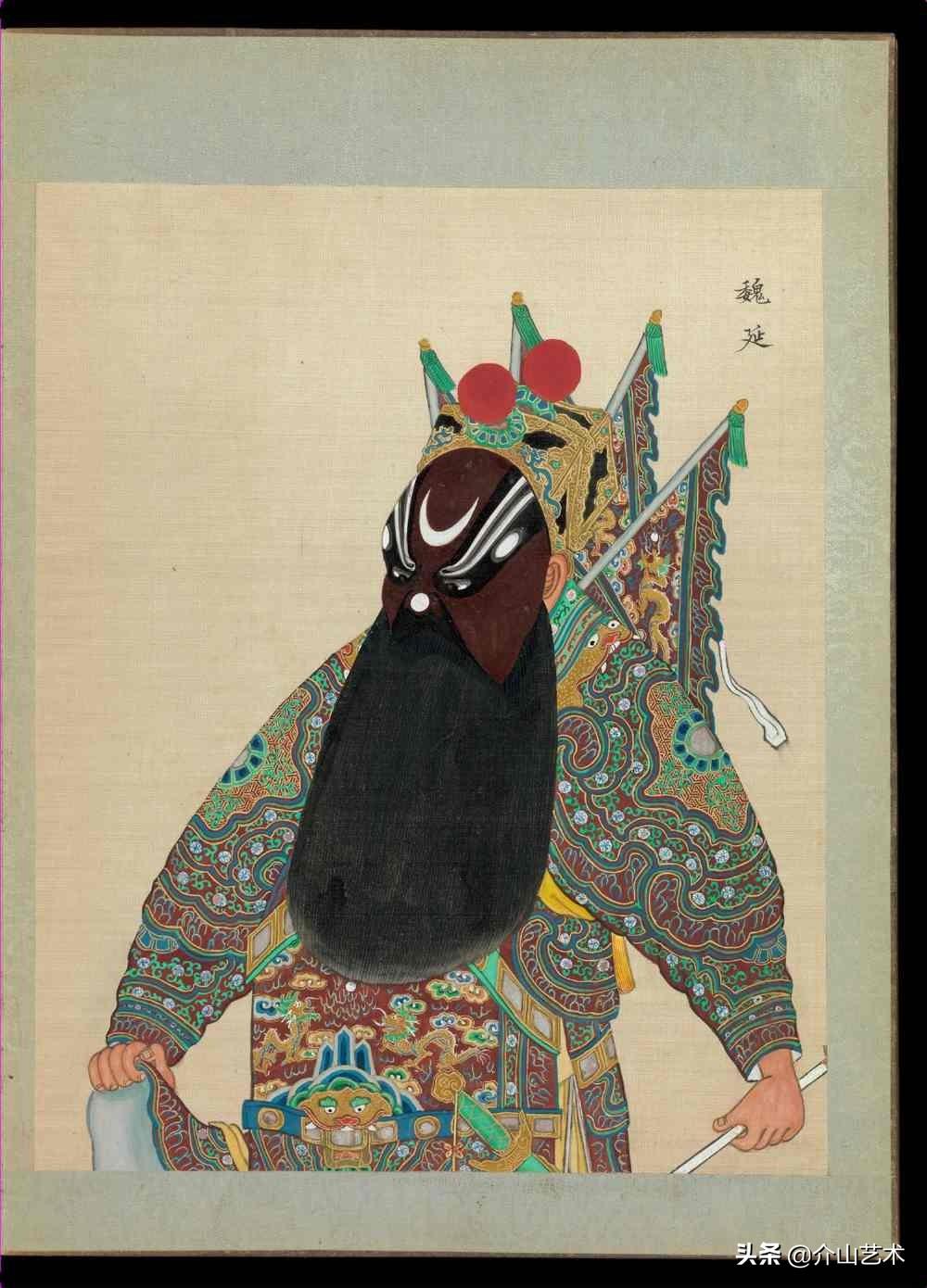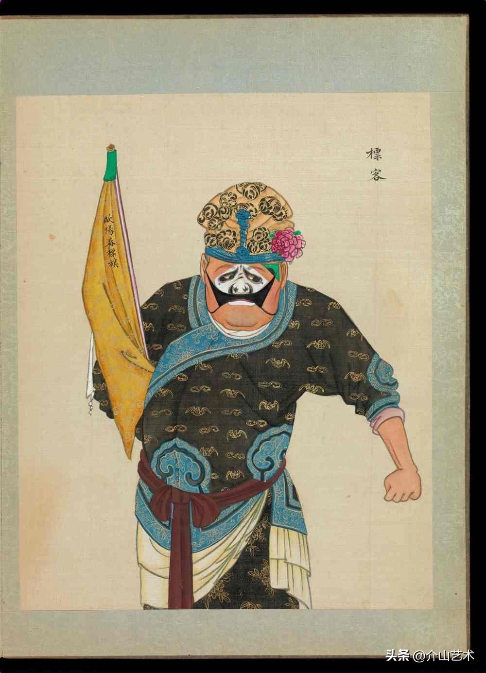 下面这组100位京剧人物造像,体现了清代不同京剧人物,不同脸谱与穿着,绘画细致生动,颜色、衣着纹路都凸显出人物的特征及性格,以工笔传统的手法绘制,这是一本珍贵的绘本,给后人研究京剧历史发展提供了宝贵的研究史料。