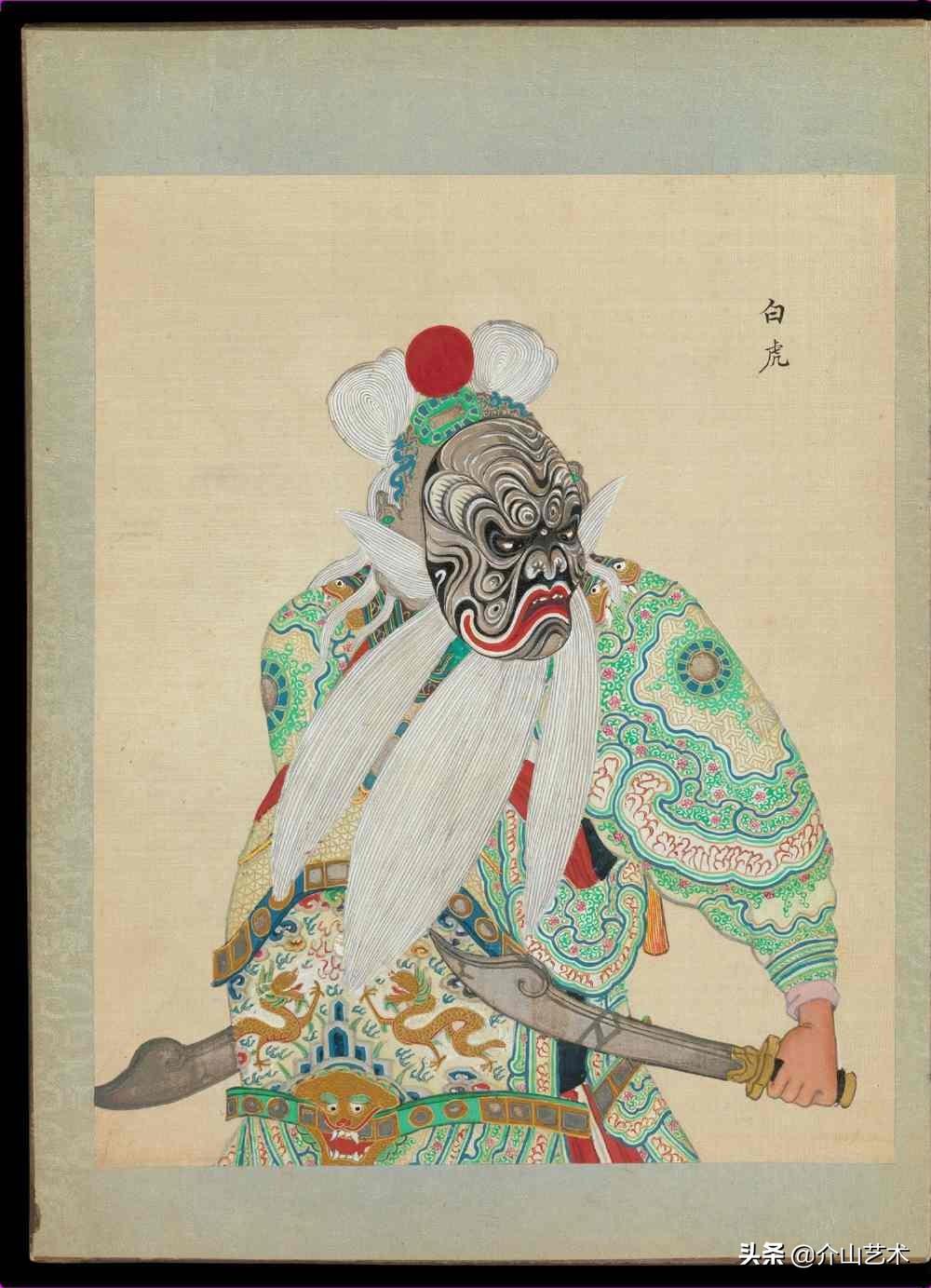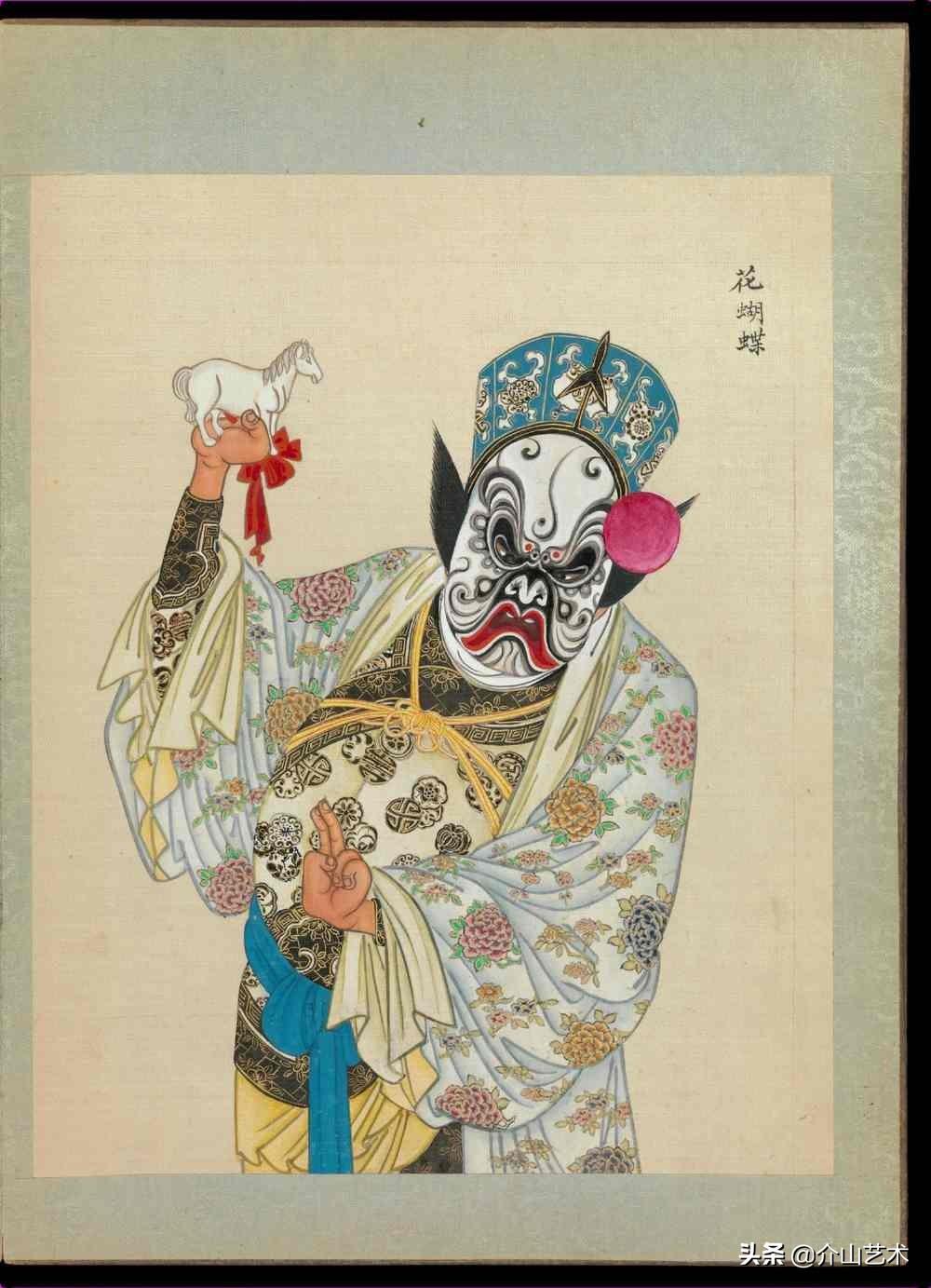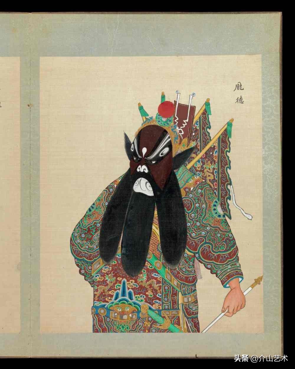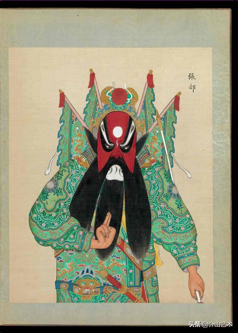 下面这组100位京剧人物造像,体现了清代不同京剧人物,不同脸谱与穿着,绘画细致生动,颜色、衣着纹路都凸显出人物的特征及性格,以工笔传统的手法绘制,这是一本珍贵的绘本,给后人研究京剧历史发展提供了宝贵的研究史料。