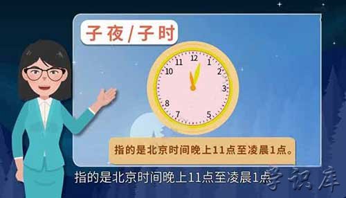 子夜指的是北京时间晚上11点到次日凌晨1点,古人的计时用语是辰,将一天分12个时辰,1个时辰相当于现在的2个小时,采用地支作为时辰名称,即子、丑、寅、卯、辰、巳、午、未、申、酉、戌、亥,对应现在的24个小时。