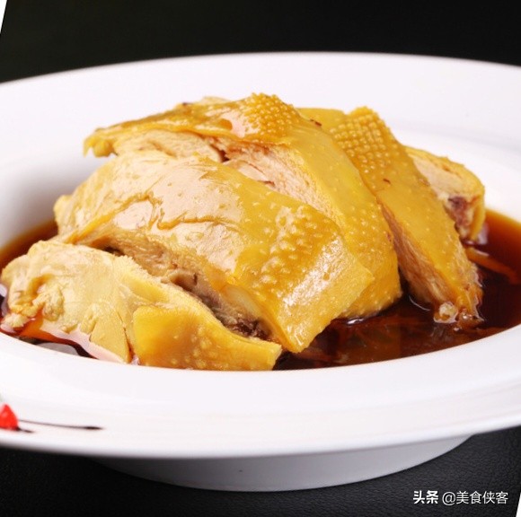 然后在开锅状态下用手拿出鸡头,将鸡身放入卤水中,待卤水灌满腹腔之后再拿出来控干水分,以此类推3~5次,然后将两只鸡都放入卤水之中,压上一个篦子,开锅之后改为微火(始终保持锅中汤面似开似不开状态),一直保持这种火候60-70分钟后即可出锅。