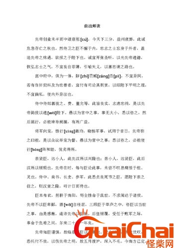 出师表原文全篇带拼音及翻译?先帝创业未半而中道崩殂(c),今天下三分,益州疲(p)弊,此诚危急存亡之秋也。然侍卫之臣不懈(xi)于内。