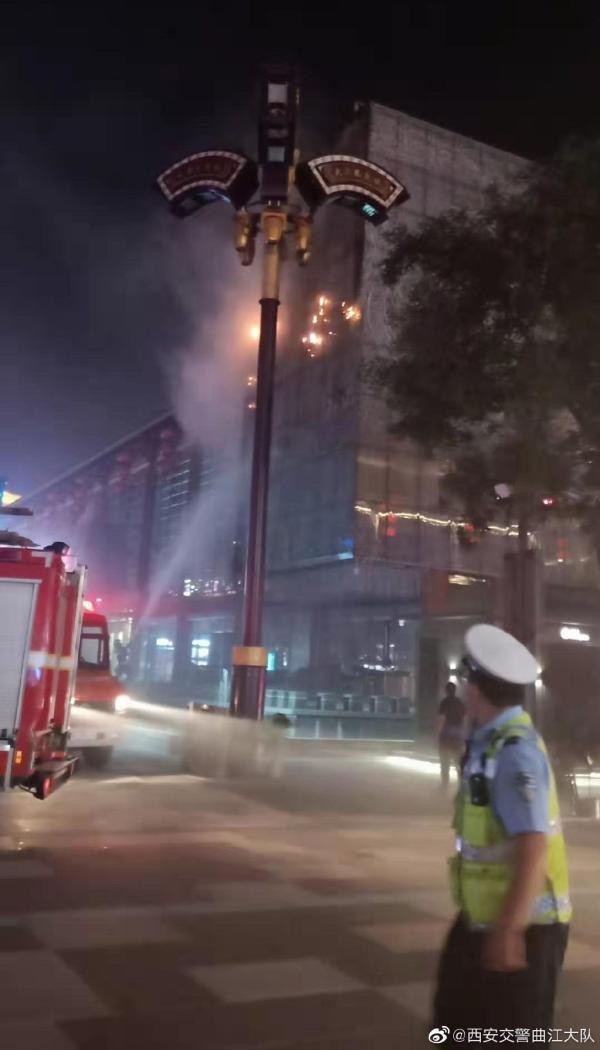 西安大唐不夜城步行街起火,目前明火已经扑灭