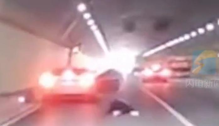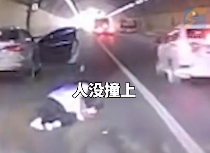 惊险!女子高速隧道内突然跳车吓坏后车车主,幸好及时刹车变道