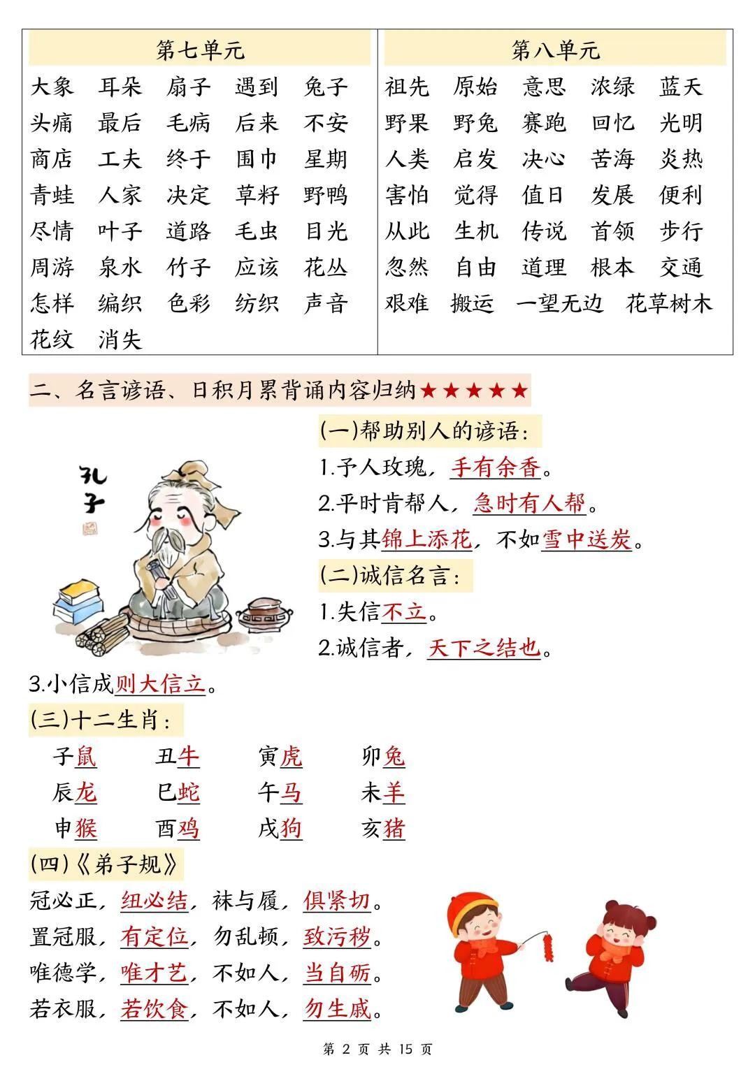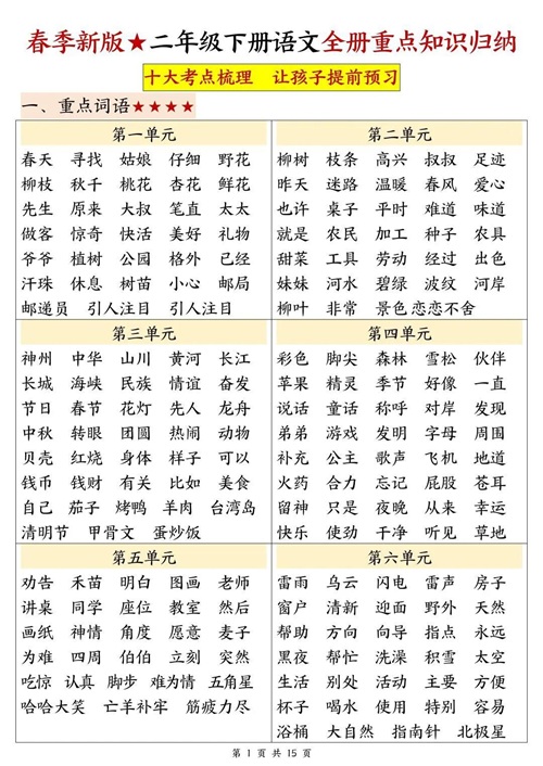 春季新版二年级下册语文全册重点知识归纳都在这里啦‼️抓紧给孩子,提前熟悉背诵起来吧。