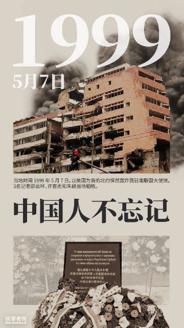 1999年5月7日,那场比血债,永远铭刻在我们心中。三位无辜的使馆工作人员,用生命捍卫了国家尊严和民族利益,他们是英雄,是国家的脊梁,是中华民族的骄傲。让我们永远怀念他们,永远珍惜和平,警惕战争的可怕后果,共同努力为构建人类命运共同体贡献力量。