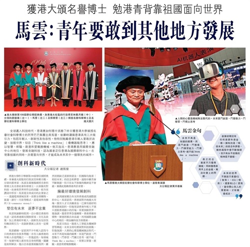 力挺年轻人是香港宝藏!马云港大演讲获港媒点赞