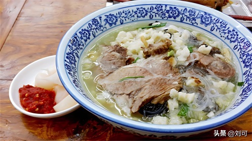 黄陵牛羊肉泡馍:以牛羊肉为主料,馍烘后较硬,口感有嚼劲,汤汁鲜美,是延安的传统美食。