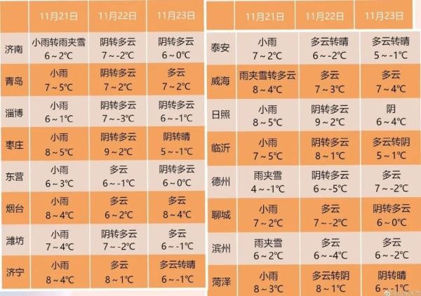 今天白天到夜间我省有小雨雪,济南、德州、菏泽最低气温继续下降,明日北部地区最低气温降至冰点以下,其中德州最低气温将现-5°C,建议外出的时候一定要注意保暖,并且要做好防风防雨的准备。