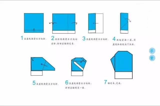 手套的折法很简单吧,小朋友们还可以用彩笔为手套画上各种花卉和动物,将手套装饰的与众不同哦!
