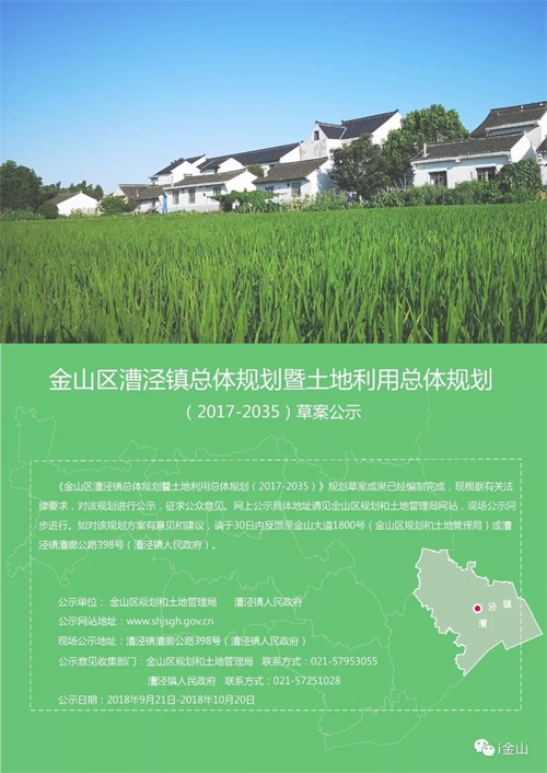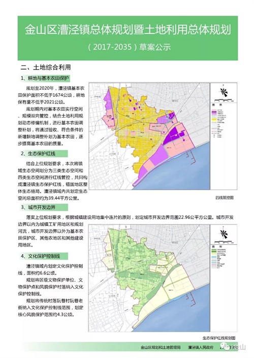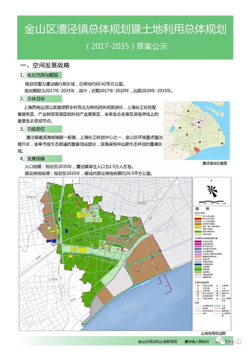 近日,金山区漕泾镇总体规划暨土地利用总体规划(2017-2035)草案公示了。未来的漕泾镇又有哪些亮点呢?一起来看看吧!