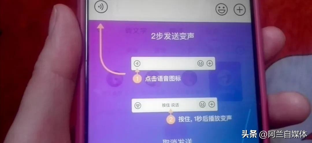 下方就有两步发送变声的步骤。第一步我们点击语音投标。第二步按住一秒后就可以播放变音。我们就可以把这个语音图标点一下,然后我们再用手指把它按着,这样就听的清清楚楚的。然后我们松开手指,那么自动就发送给好友了。如果对你有用,记得点赞、关注、收藏、转发一下。喜欢我关注我了。