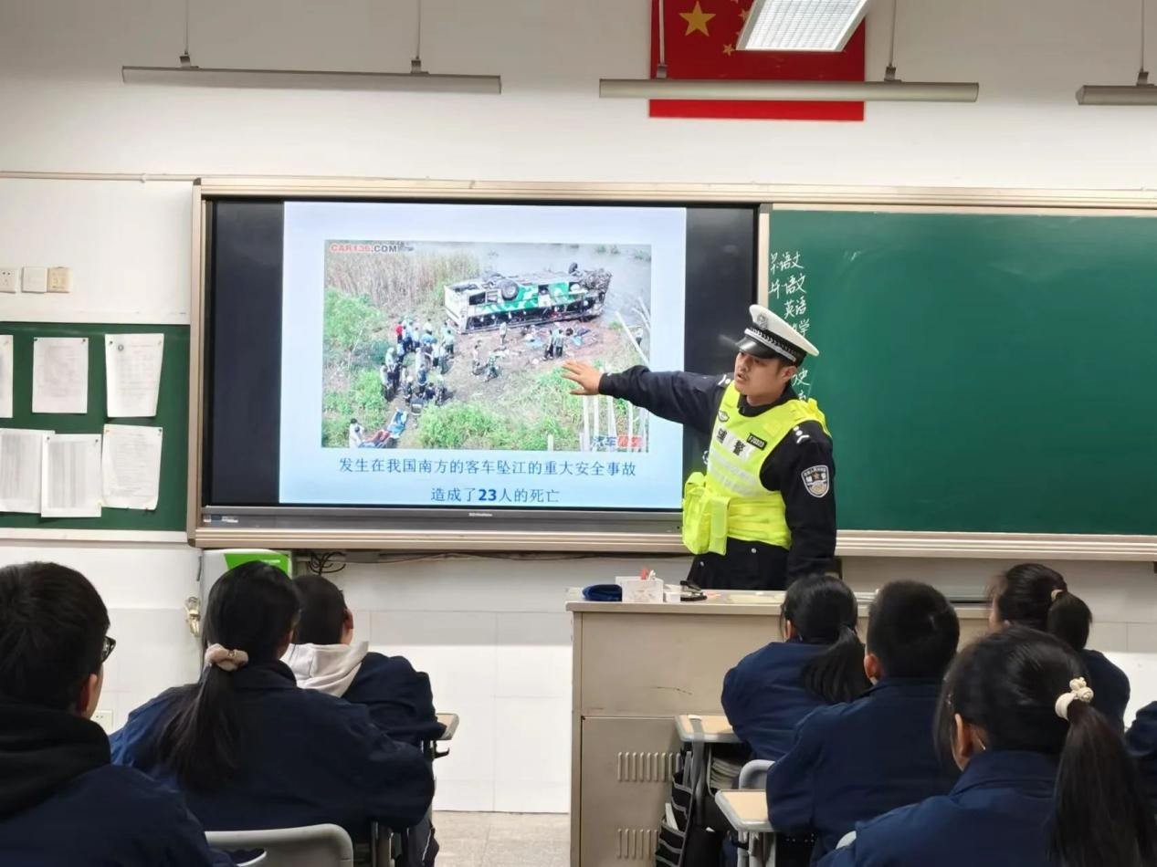 为筑牢校园交通安全防线,增强学生交通安全意识和自我保护能力,响应2025年舞阳街道“新春第一课”系列活动,2月14日开学首日,舞阳街道应急消防管理站、舞阳社区、武康中学联合县交警大队城区二中队走进武康中学,为学生们带来一堂生动实用的交通安全知识课,以“新春安全第一课”护航新学期。