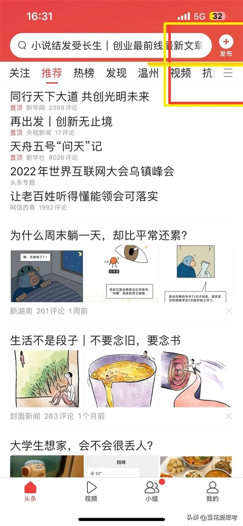 头条上推荐栏目向右滑动可以看到问答的按钮,点击后很明显的答题和提问。