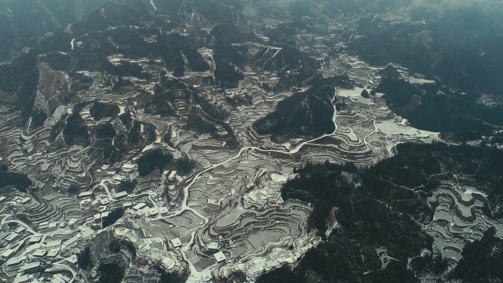 湖北省保康县龙坪镇大水林场航拍的雪景。新华社供图 杨韬 摄