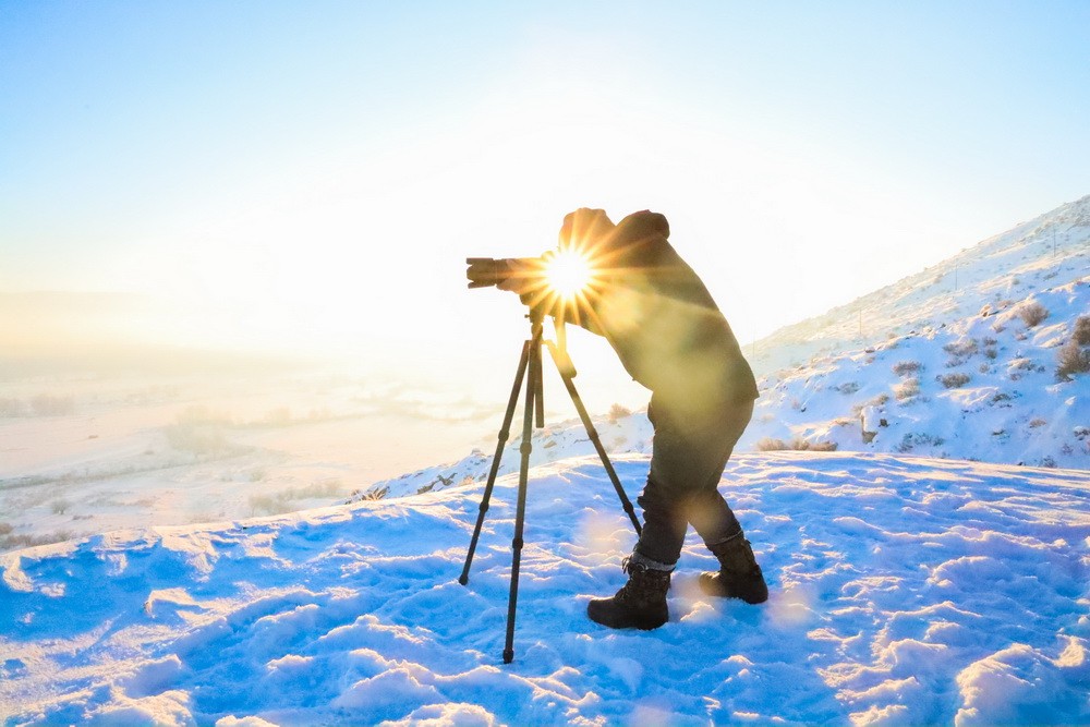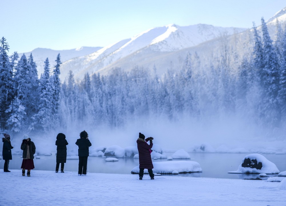 游客在布尔津县冲乎尔镇拍摄雪景。新华社记者 沙达提 摄