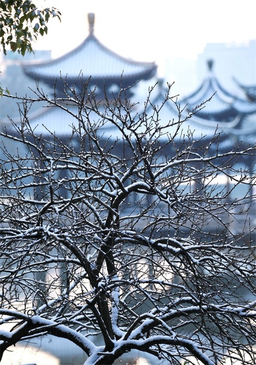 江苏省南京市夫子庙景区雪景。新华社供图 方东旭 摄