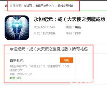 2、进入抢号页面输入“永恒纪元:戒”,即可搜索到永恒纪元:戒可领取礼包