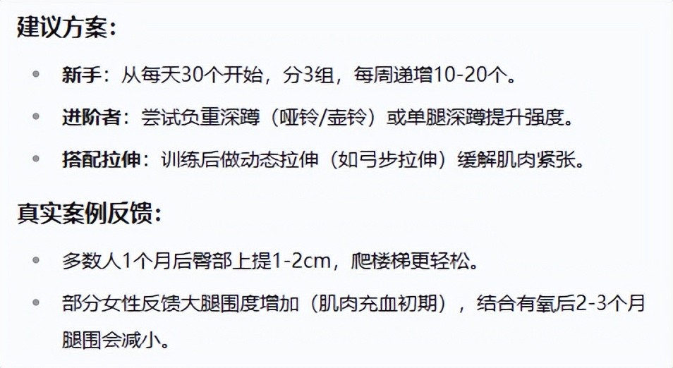 总之:100个深蹲是性价比高的训练,但建议搭配其他动作组成完整训练计划,并关注身体信号。动作质量比数量更重要,出现膝盖刺痛应立即停止并调整姿势。