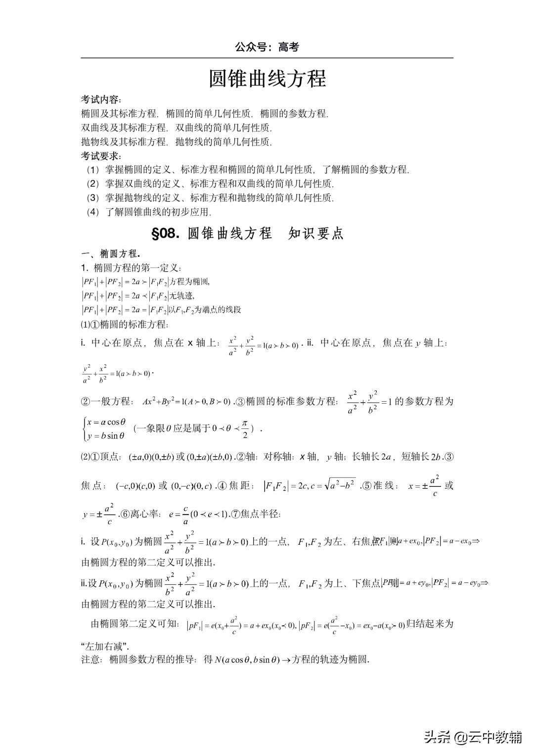 圆锥曲线最全公式+知识点,看这一篇就够了!