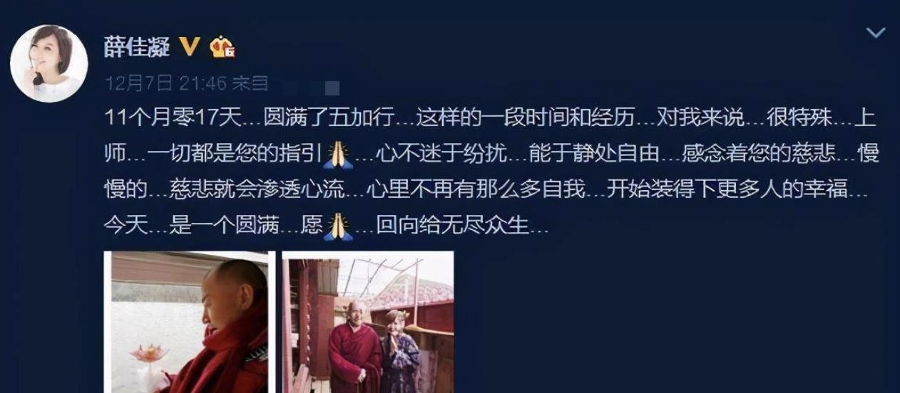 2017年,她发布图文,称自己已经修行11个月零17天。