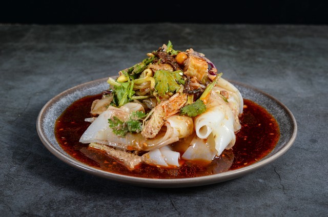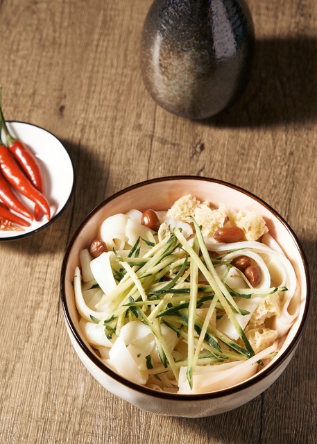 凉皮:这是一道由小麦粉制成的凉拌小吃,口感爽滑,通常会加入辣椒油、芝麻酱、醋等调料,味道酸辣可口。