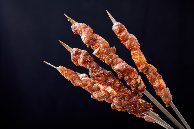 烤肉串:这是一道以羊肉为主料的烤串,搭配上孜然、辣椒粉等调料,味道香辣可口。