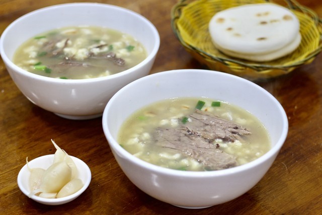 羊肉泡馍:将馍和羊肉一起炖煮,最后配上辣椒酱和香菜。这道菜肉质鲜嫩,汤汁浓郁,是一道暖身的冬令佳肴。