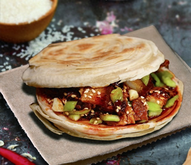 肉夹馍:这是陕西最著名的特色小吃之一,由烤制得酥脆的馍夹上炖煮得软烂的肉和各种调料组成,口感丰富,味道独特。