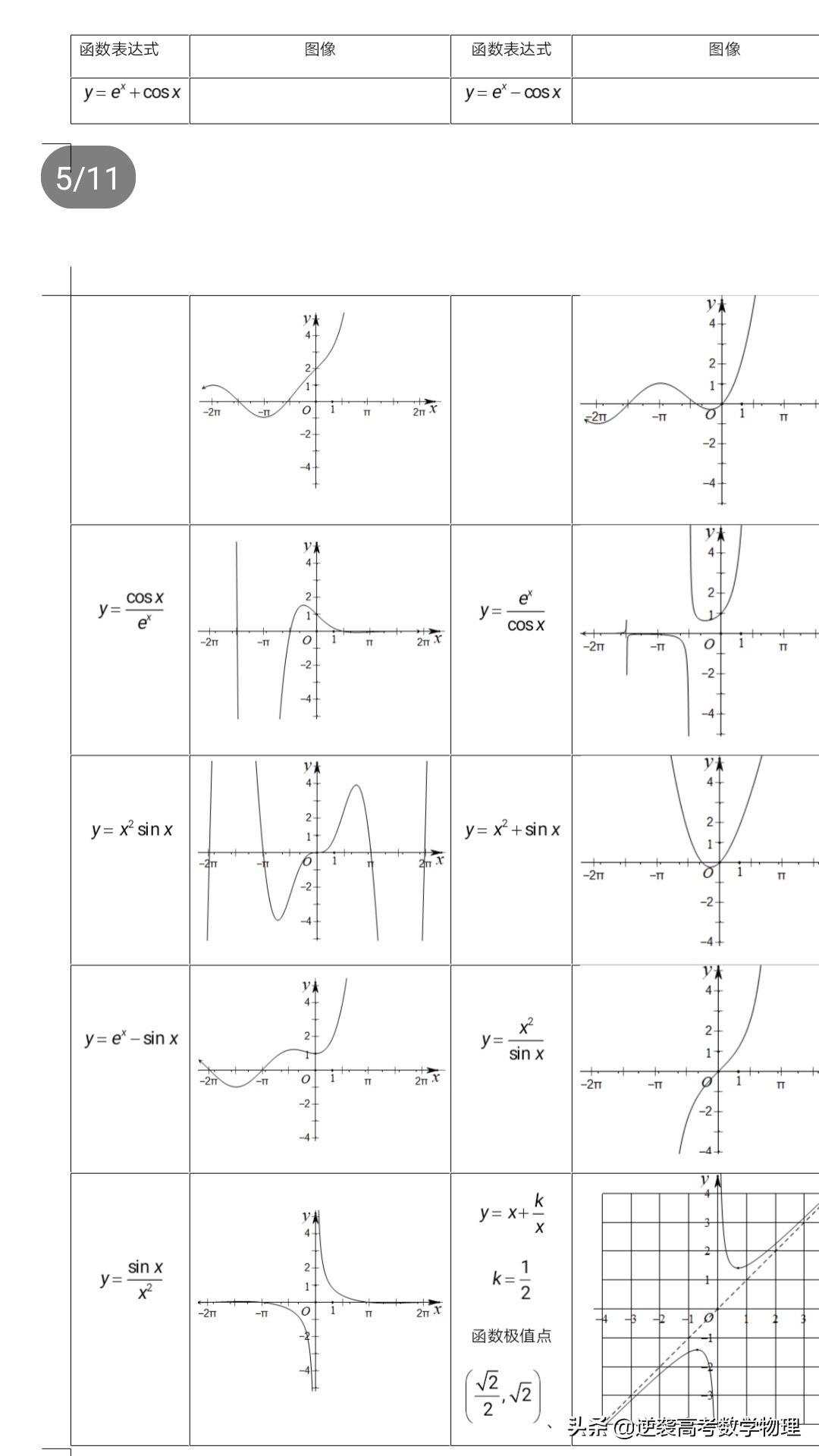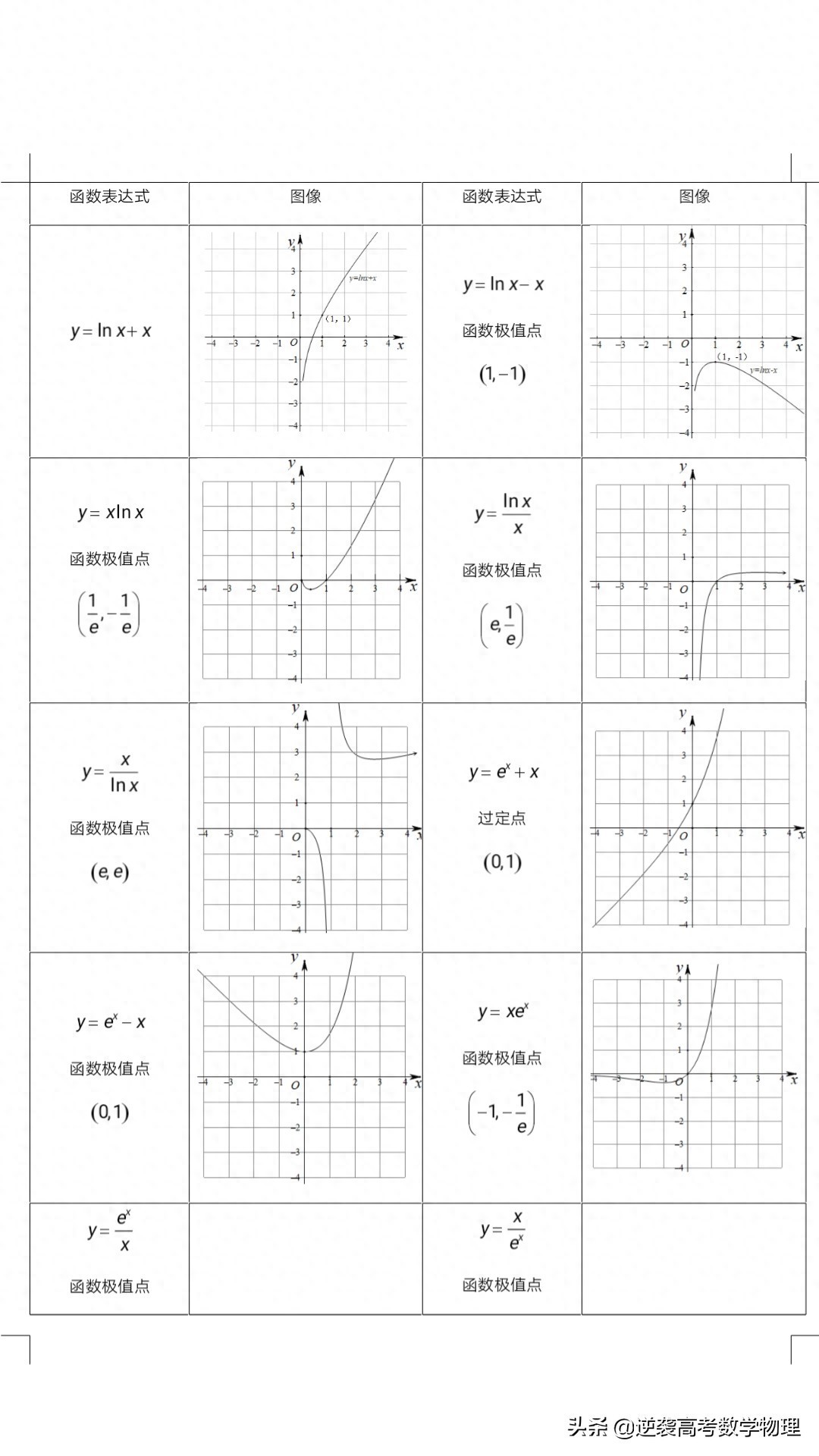 高考中常考的特殊函数图像集锦,在函数证明题中经常用到