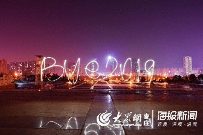 大众网·海报新闻枣庄1月1日讯(记者 袁鹏)在2019年与2020年交接之际,大众网·海报新闻的记者来在枣庄市政广场,用光绘的形式创作了绘有“Bye 2019”“Hello 2020”等字样的照片,向2019年告别,向2020年致以第一声问候!