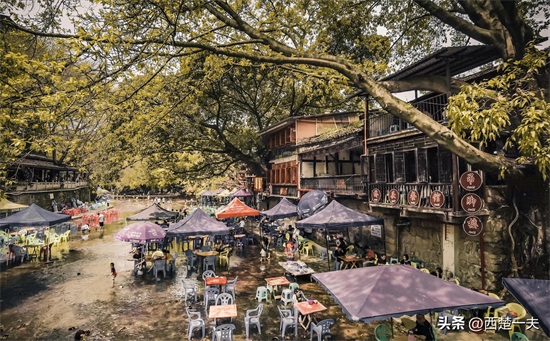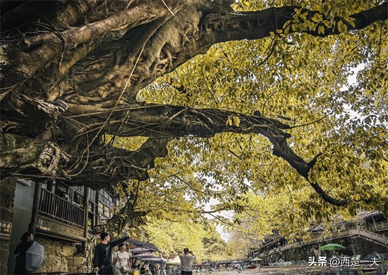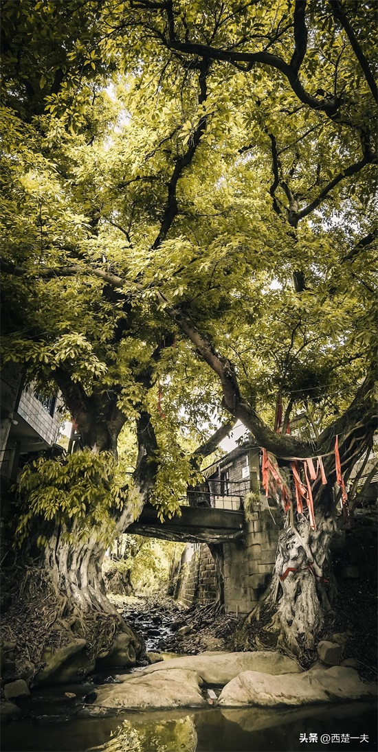 偏岩镇是通往华莹古道上的一座工商古镇,昔日商贾云集,商贸繁荣,名播川峡湖广,建镇 300多年来,虽经数百年的时代变迁,其街道、建筑、民风仍然保留着昔日古朴、优雅风貌。建筑依山傍水,阴阳迭分,负阴抱阳,座东朝西,黑水滩河环抱古镇,呈天然太极之形,优美的自然环境与人工建筑巧妙地融为一体,相得益彰,和谐多趣,充分体现了人与自然和谐相处的理念。古镇的正街用长条的青石铺筑,幢幢木屋砖舍依山分布,重重叠叠,错落有致,沿黑水滩河蜿蜒而上, 一路木舍错落,小桥流水,绿树掩映,长达 400多米,街道两旁的店铺鳞次栉比,难得一见的草鞋、麻鞋、火钳、擂钵、碓窝都可以在这里找到,棕毛蓑衣、竹编斗笠、铁锄钢镰等等更是应有尽有。曲折的黑水滩河三面围镇而流,因河滩显黑而得名,河水清澈见底,鱼虾可辨,波光粼粼,薄雾缥缈,间有小石梯与河滩相通,供人们下河取水、浆洗、游玩,沿河可远观山川秀色,近览田园风光,身心俱回自然。小溪两旁河岸数十棵高大粗壮的百年黄桷古树大小不一,疏密相间,新老错杂,盘根错节,树树郁郁葱葱,棵棵枝繁叶茂,呈巨大的伞状遮天蔽日,掩映着傍水而筑的民居小舍。走至镇外,凭栏远眺,武庙、禹王庙、戏楼、书院与民居、铺面等建筑相间其中,远处山光水色,尽收眼底,整个小镇显得陈旧、古老、沉着、静谧、温馨、祥和,颇具“小桥流水人家”般的诗情画意。