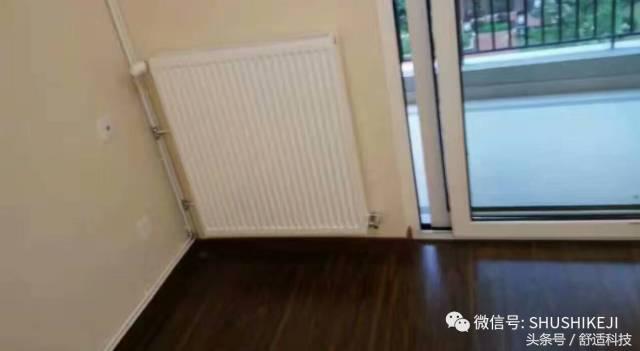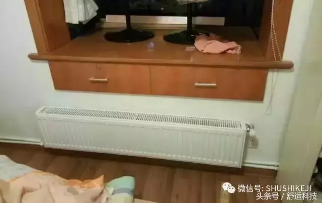 下图暖气片放置在窗台下,两边有窗帘放下,实际看到的管道部分,就红色框出的两小段。