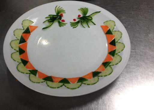 其实这些看着很精美的摆盘做起来也是很容易的,主要就看你有没有这个闲情雅致愿不愿意做了,主要的材料大概就是黄瓜、胡萝卜、西红柿还有白萝卜等这些看着颜色比较鲜艳一些的果蔬,需要的时候加上牙签就可以了,其中比较常见的团就是黄瓜花了,这也是最好做的。