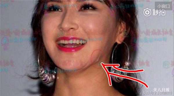而且脸上的苹果肌不仅稍显僵硬,甚至笑起来的时候下颚还有一块莫名突出的皮褶。