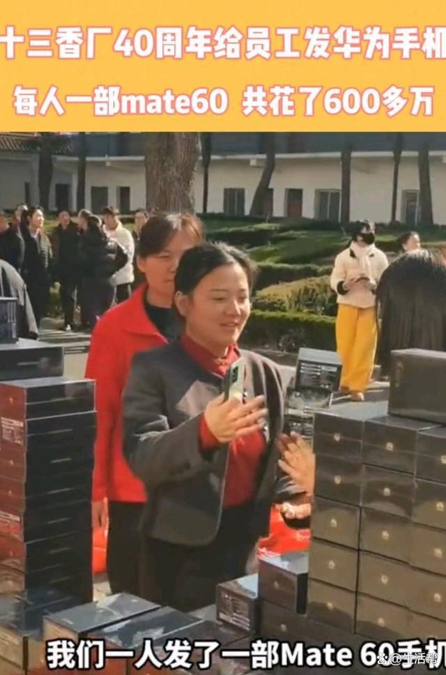 而在这值得欢庆的厂庆时刻,公司的暖心之举更是羡煞旁人。为感恩 1000 多名员工多年来的携手相伴与辛勤付出,王守义十三香大手一挥,豪掷超 600 万元,为每人送上一部华为 Mate60 手机。在这个特殊的日子里,员工们收获的不只是一部前沿科技产品,更是公司满满的认可与关怀。这一部部手机,承载着企业对员工的感恩,也象征着他们共同走过的风雨兼程路。