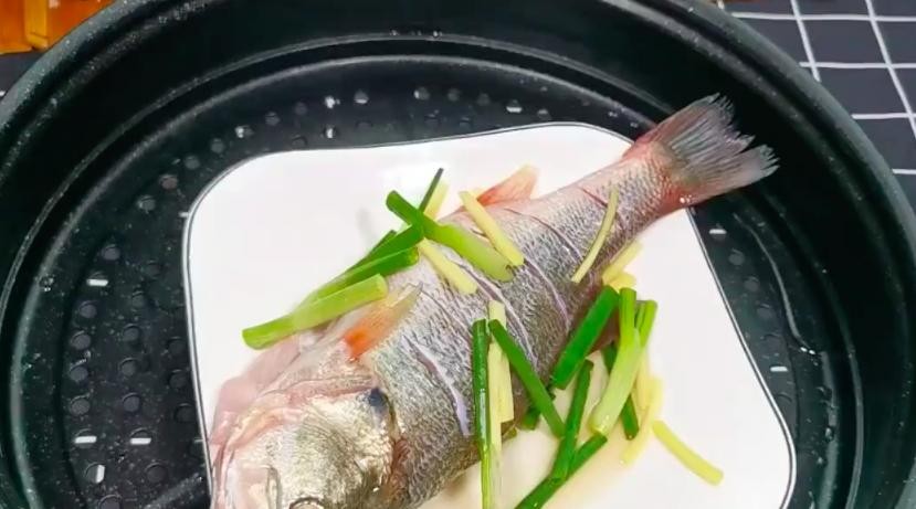 2、腌好的鲈鱼上锅蒸8-10分钟