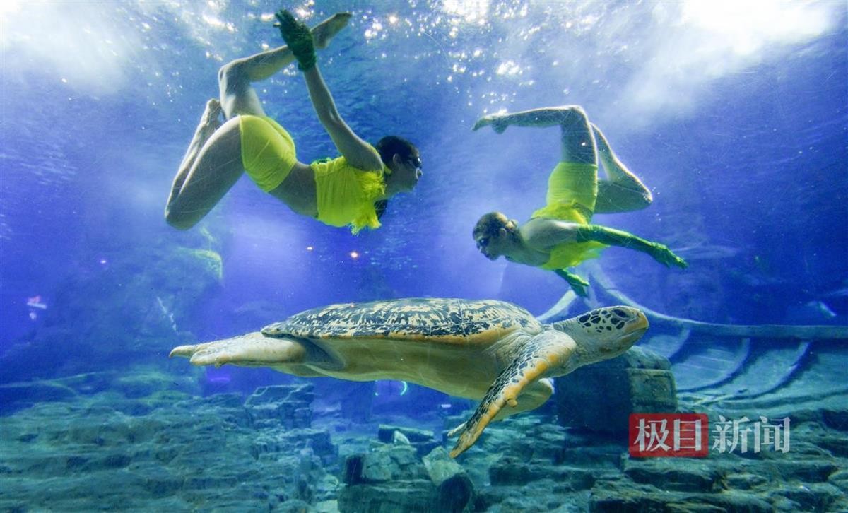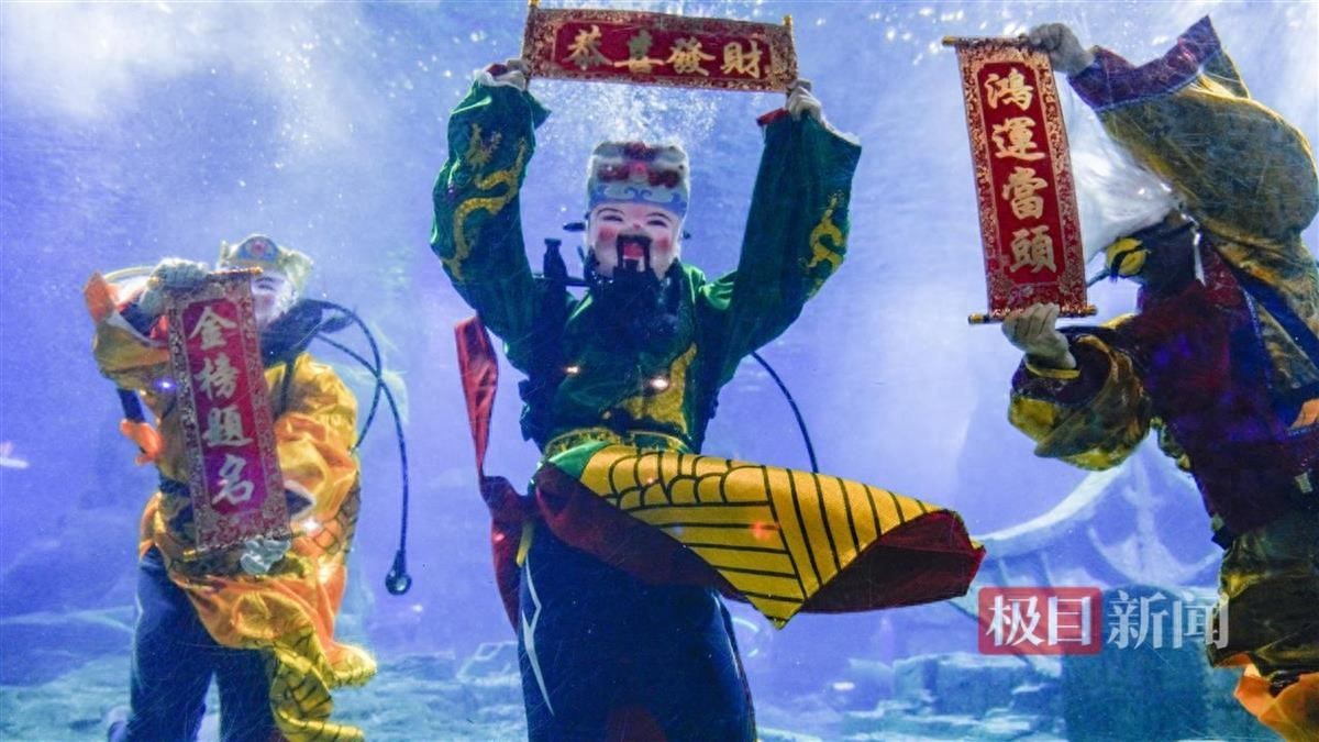 1月22日,农历腊月二十三,正值北方小年,武汉东湖海洋乐园推出了福禄寿三星报喜贺新春的“海底”表演,节日活动让游客感到喜气洋洋。