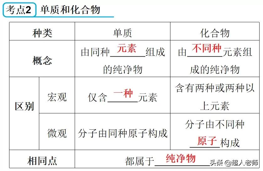 【注意】(1)同种物质的不同物理状态混合在一起也是纯净物,如冰水混合物;(2)由一种元素组成的物质不一定是纯净物,如金刚石和石墨组成的混合物。