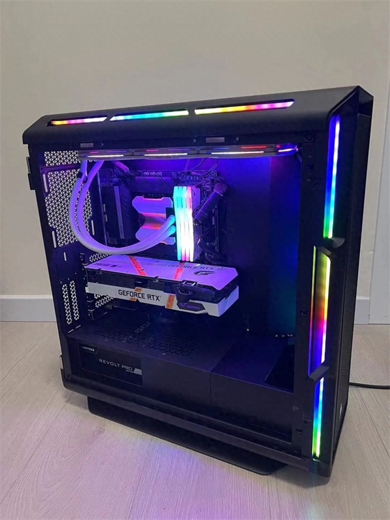 机箱和电源为日后升级留有空间,机箱可继续加装4把12cm风扇(可装最多10把12cm风扇),显卡下方空间开阔,即使未来升级RTX3080Ti或RTX3090这种高功耗显卡也不会造成机箱积热现象(GDDR6X现存功耗较高发热量大)